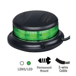 2500 Series 1.9″ High x 3.5″ Lens Diameter (Base Diameter = 4.4″) Clear/Green Low Profile Beacon (Screw Mount, 3-Wire Cable)