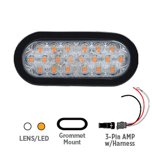 600 Series 6″ Oval Clear/Amber Warning Light (Grommet Mount, 3-Pin Amp Connector w/ Jumper Harness Kit)