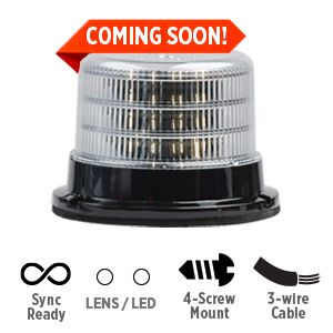 4100 Series 6″D x 5″H Round Clear Lens / White LED High Profile Beacon (4-Screw Mount, 3-Wire Cable)