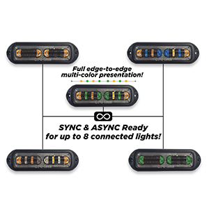 WA1000 Series Warning Light, 4.8″ x 1.5″ x .43″ with Clear Lens and Amber LEDs. Screw Mount with 4-wire Cable. Light has SYNC and ASYNC capabilities for up to 8 lights.