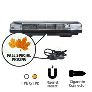 LB1600 Series 16″ Clear Lens / Amber & White LED Light Bar (Magnet Mount, 2-Button Cigarette Lighter Plug)
