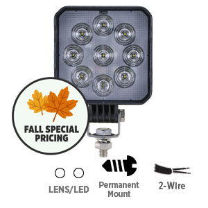 WK980 Series 4.25″ Square Clear/White Work Light (M10 Bracket Mount, 2-Wire Cable Connection)