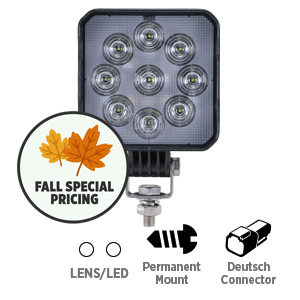WK980 Series 4.25″ Square Clear/White Work Light (M10 Bracket Mount, Deutsch Connector)