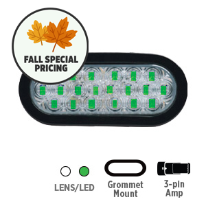 600 Series 6″ Oval Clear Lens / Green LED Warning Light (Grommet Mount, 3-Pin AMP Connector w/Jumper Harness Kit)
