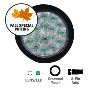 400 Series 4″ Round Clear Lens / Green LED Warning Light (Grommet Mount, 3-Pin amp connector w/ Jumper Harness Kit)