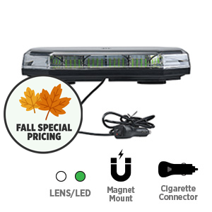 LB1500 Series 15″ Clear Lens / Green LEDs Light Bar (Magnet Mount, 2-Button Cigarette Lighter Plug)