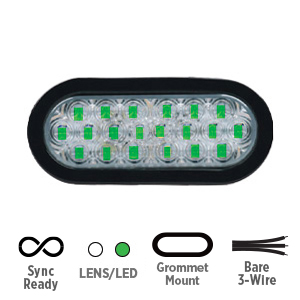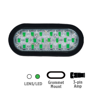600 Series 6″ Oval Clear/Green Warning Light (Grommet Mount, 3 pin amp connector w/Jumper harness kit)
