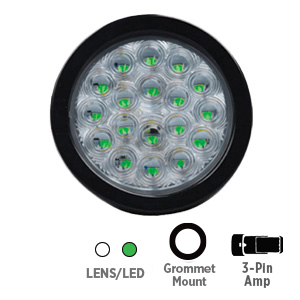 400 Series Michigan 4″ Round Clear/Green Warning Light (Grommet Mount, 3 pin amp connector w/ Jumper Harness Kit)